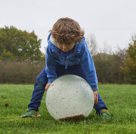 A large clear inflatable ball with a subtle textured surface, containing thousands of tiny colourful plastic beads which rattle and dance as the ball is pushed and rolled about. Ideal for gentle, controlled physical play where children can roll or pass the ball to each other.