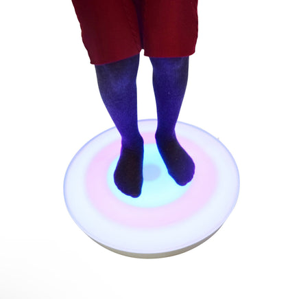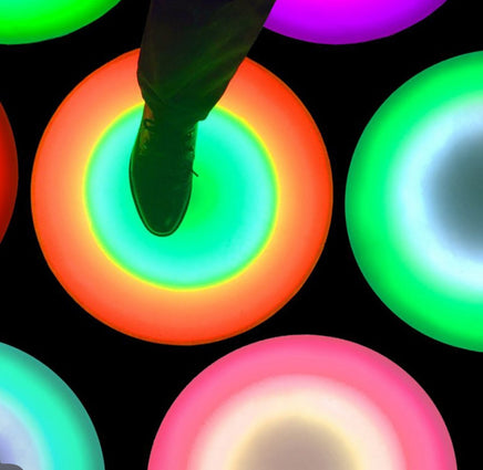 A wonderful visual and tactile light up experience that really will encourage you to get up and move. Create a unique sensory environment with circular interactive LED tiles that respond to touch! Ideal for placement on the floor or on walls. A vibrant colour change display shines through two different interactive circular light up rings and the colour stops on a specific colour once the child removes their foot from the tile allowing a tap through function resulting in playful dance floor effects