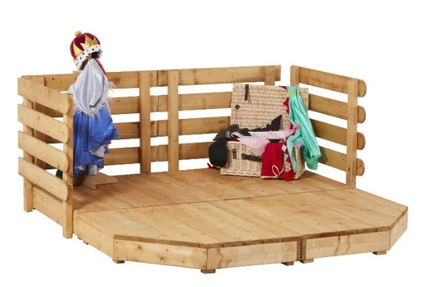 Thespian's Terrace offers a versatile, bolt-together platform for budding actors and imaginative builders. This sturdy, elevated stage is perfect for diving into drama, building magical worlds, or creating make-believe outdoor kitchens. Its design serves as a delightful launchpad for creative play and endless outdoor adventures. Assembly is required.