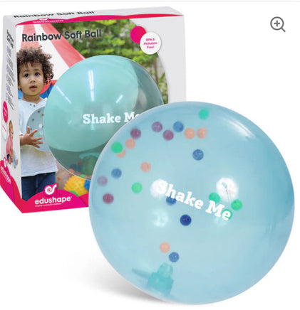 The Edushape Rainbow Soft Ball is a sensory-rich toy designed to engage and captivate young children. This transparent 18cm ball contains colourful mini balls that swirl and cascade inside, creating a dynamic visual effect.
