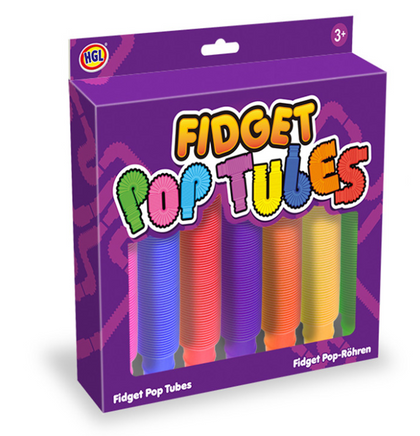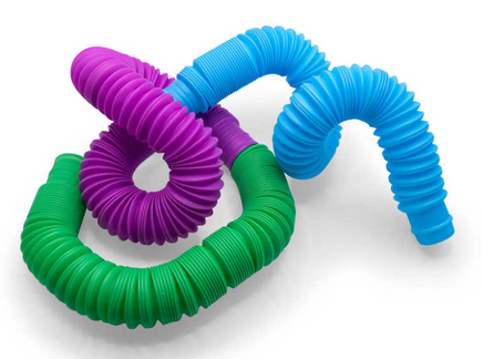 Pack of brightly coloured bendy tubes that can expand and contract. This set of fiddle toys appears compact at first, but pull on either end and they will open up into long tubes up to 70cm in length. What's more, they can bend round and connect end-to-end, or even attach to each other to form longer tubes. Pack includes eight tubes in a variety of different colours.
