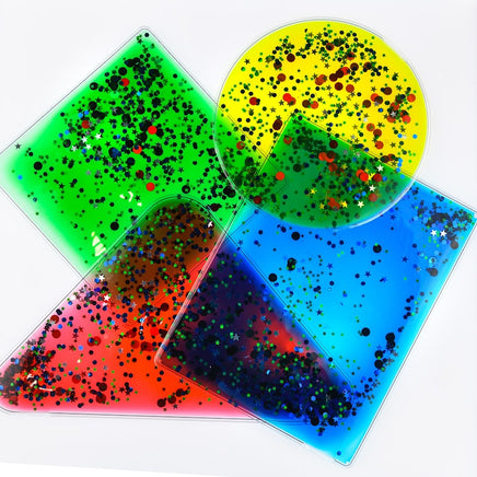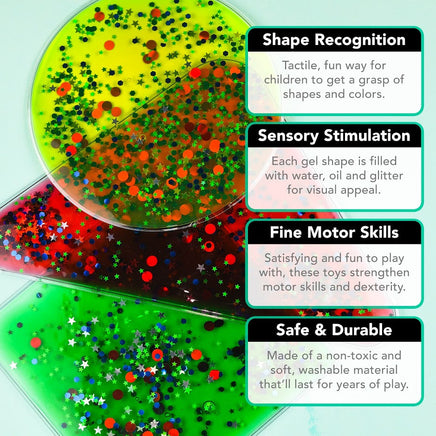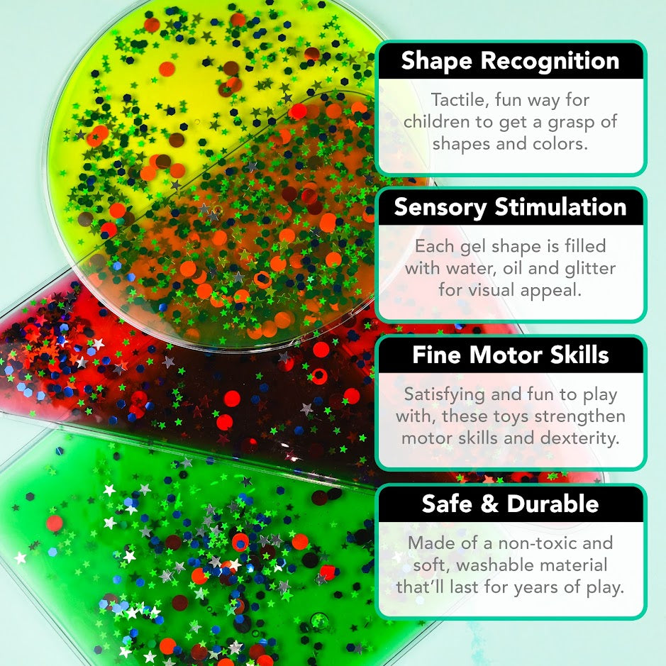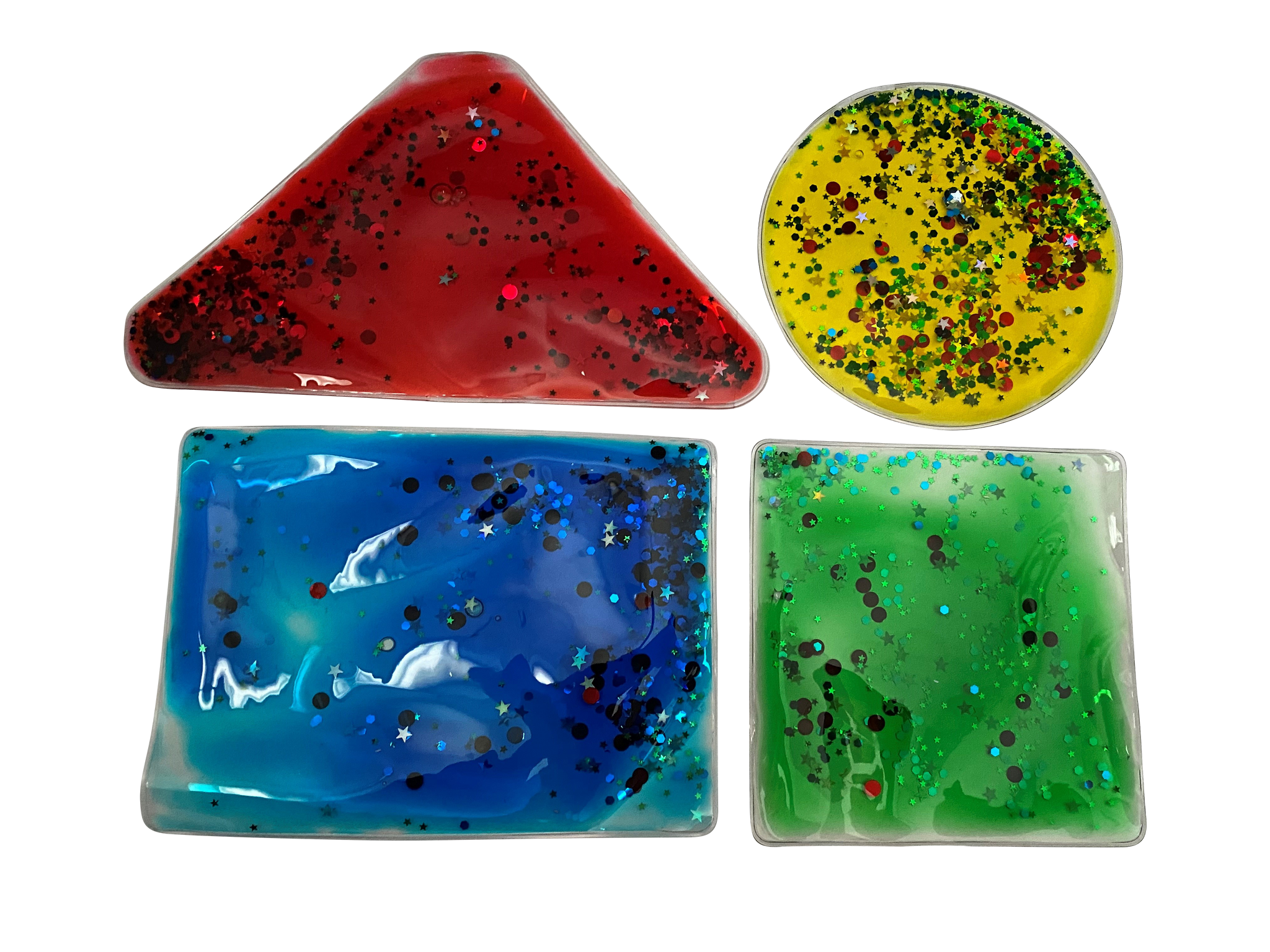 Nice colourful Jelly Shapes with water, oil and glitter inside.