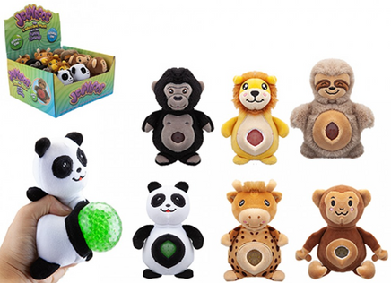 Collection of Jungle assorted plush with jelly balls inside that protrude when squeezed.