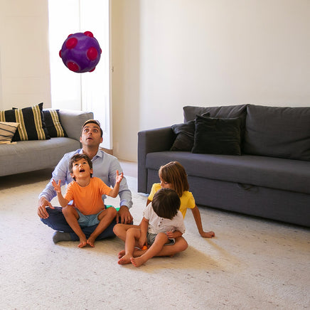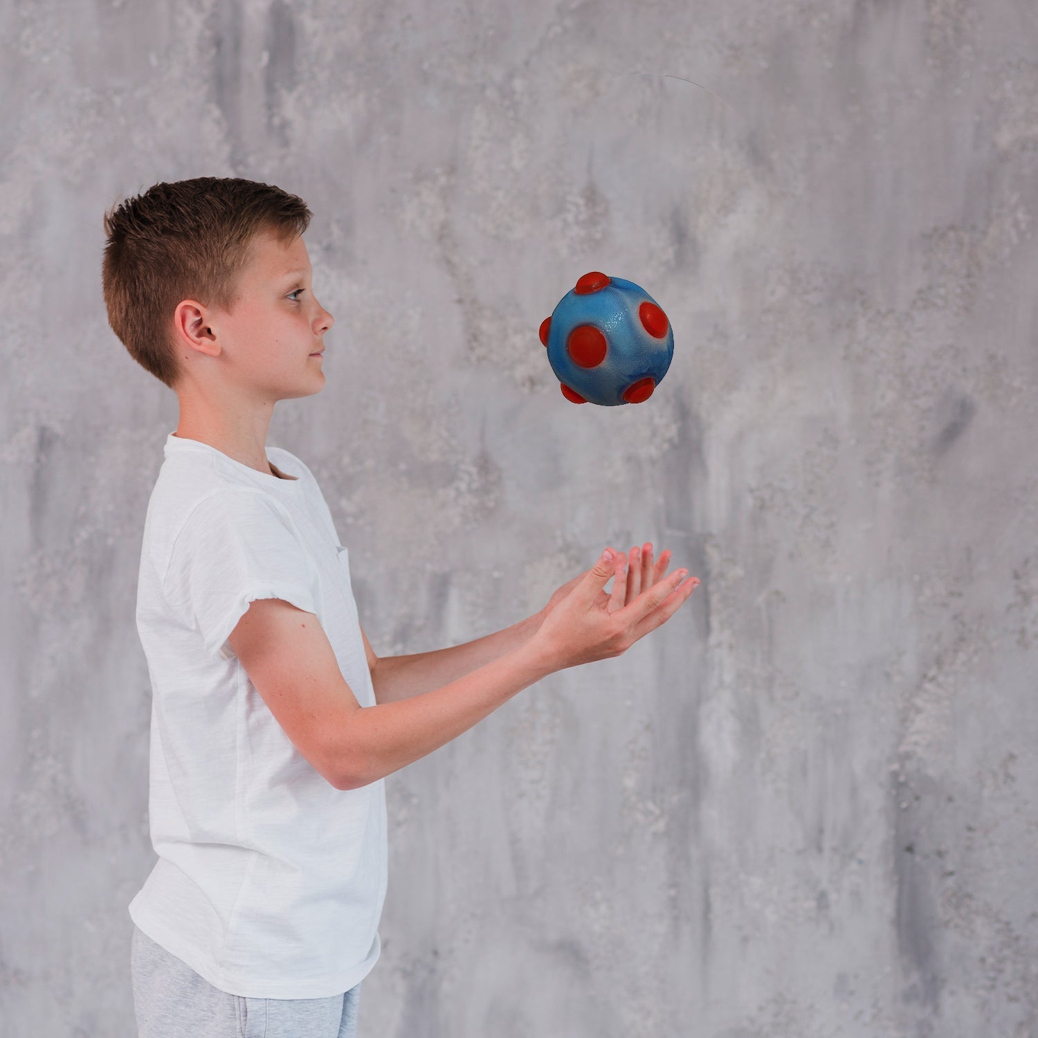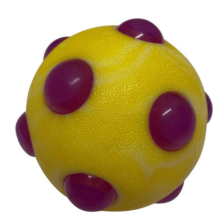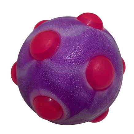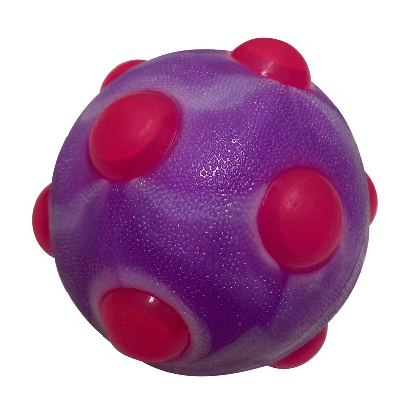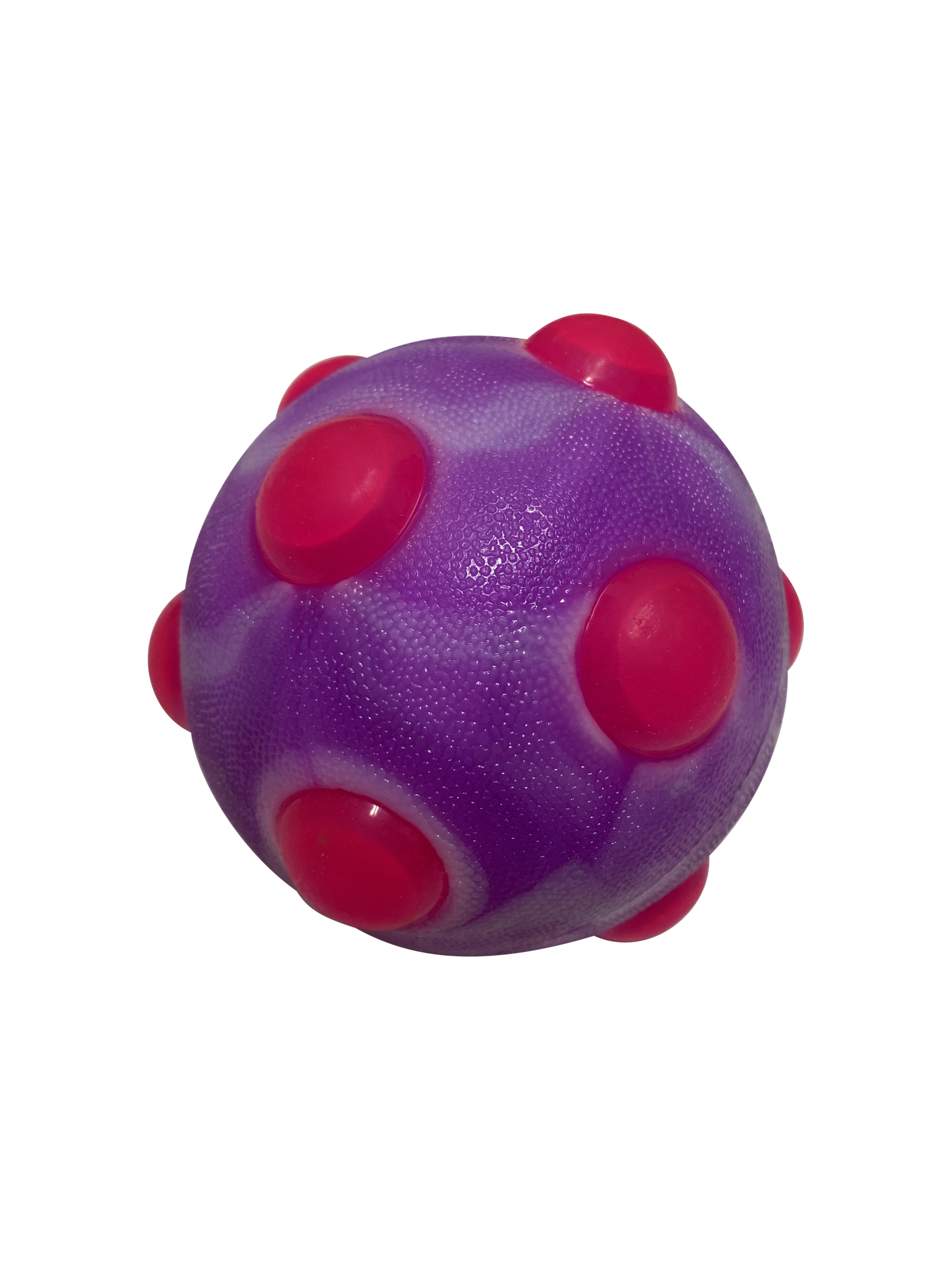 Large, flashing ball with two colour and textured finish which allows the ball to be easily gripped and promotes Cognitive Development – (Curiosity, Creative expression, problem solving) and Physical Motor and Sensory skills, and Emotional Development. Each ball has a two colour finish, soft to touch and flashes when bounced. Colours will vary.