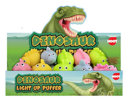 Light up dinosaurs in four assorted colours. Each measures 6 x 11.5 x 5.5cm. The ideal sensory toy.