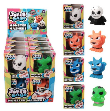 Get ready for Monster Mashers! With 4 cool and funky characters to collect, these jiggly and fun toys are perfect for Halloween-themed play. Monster Mashers are ideal for sensory fun, these squishy monsters will keep little hands entertained for hours. Suitable for ages 3 years +.