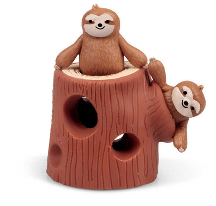 Stretchy and squeezy tree stump with a pair of bendy sloths inside. Take the sloth figures and weave them through the various holes and gnarls in the tree trunk to pose them in a variety of fun ways. Each sloth looks very cute with an adorable level of detail.