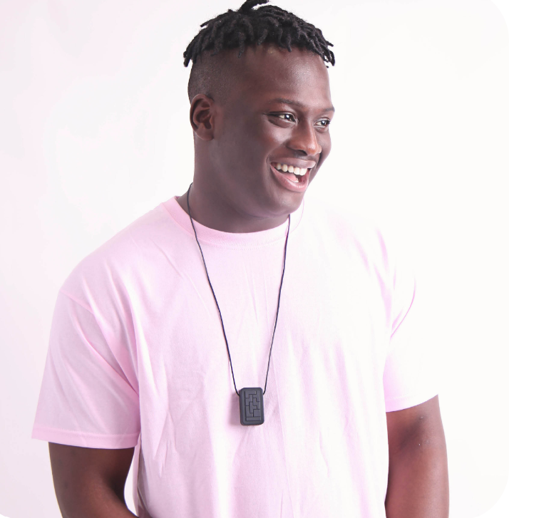 Whether you need to rub your fingers over the texture on the front or squeeze it hard in your fist or chew hard this product provides a cool, contemporary look that combines fun and function resulting in a much-loved pendant.
