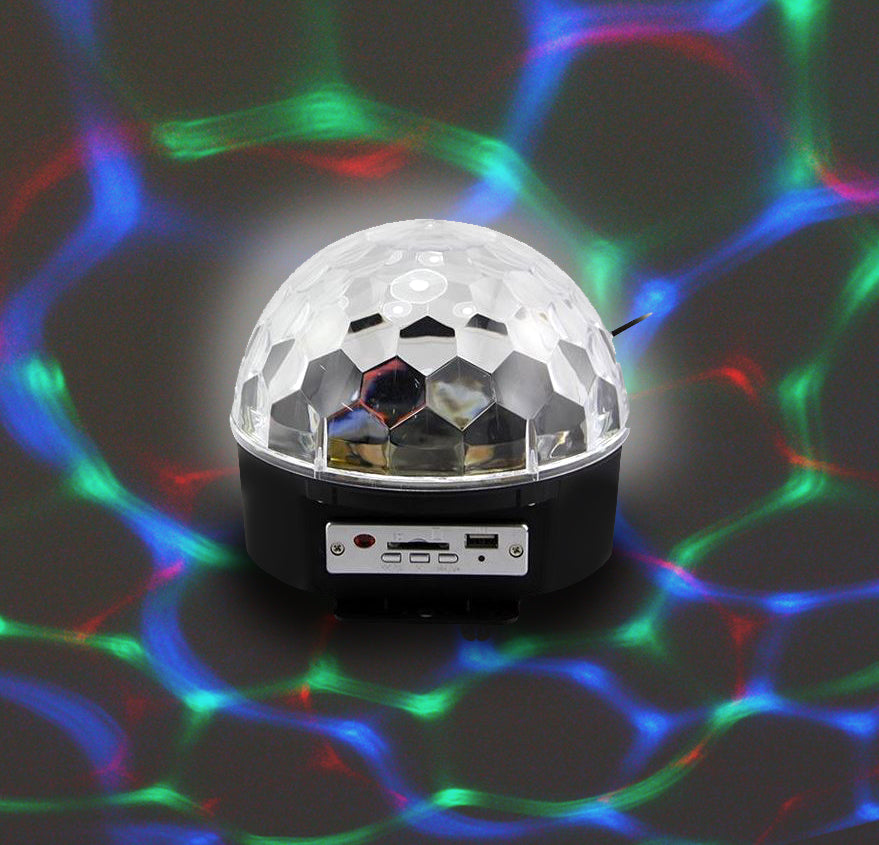 Plug in and watch with amazement as this beautiful LED Magic Ball Light mesmerizes you and your friends with its red, green, blue, orange, pink LED lights. – Just insert your USB or memory card or connect to Bluetooth device filled with all your favourite music and dance the night away! – Perfect for your birthday disco, Christmas or New Years Party! – Sounds Activated. – Lights change according to the beat of your music.