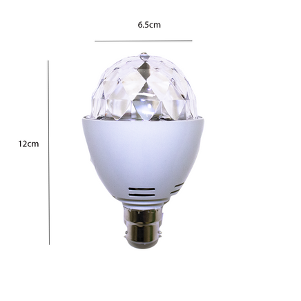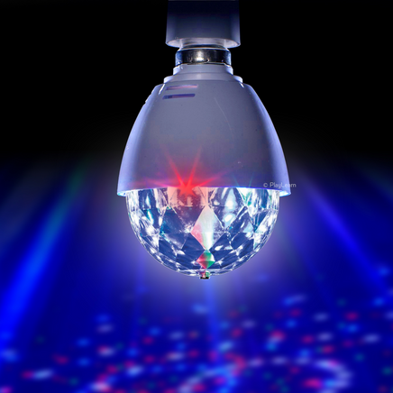 Fits into a regular b22 bayonet light bulb fitting. This model will constantly rotate like a disco ball. A great alternative to a regular disco bulb with great effects.