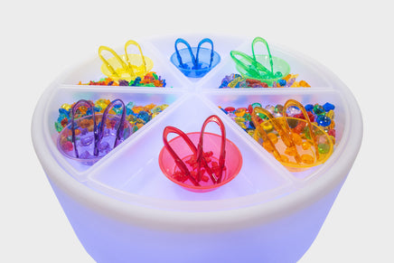 A combination set containing our colour-changing Sensory Mood Discovery Table with Discovery Trays and colour sorting accessories.