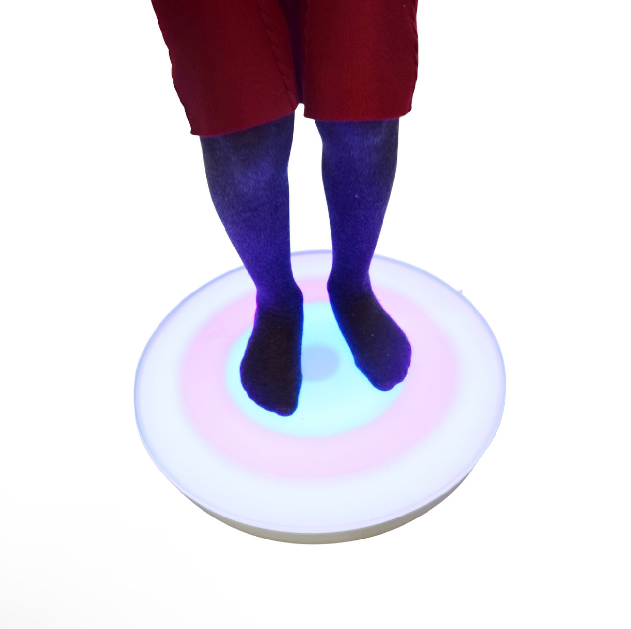 A wonderful visual and tactile light up experience that really will encourage you to get up and move. Create a unique sensory environment with circular interactive LED tiles that respond to touch! Ideal for placement on the floor or on walls. A vibrant colour change display shines through two different interactive circular light up rings and the colour stops on a specific colour once the child removes their foot from the tile allowing a tap through function resulting in playful dance floor effects