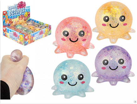 Introducing the MALTOSE SQUEEZE GLITTER OCTOPUS! Squeeze this fun and sparkly octopus to relieve stress and promote relaxation. With its glittery exterior, it's sure to catch your eye and bring a smile to your face. The perfect addition to any desk or workspace for a touch of whimsy and stress relief.