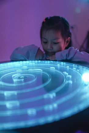 A captivating display where glowing bubbles gracefully wind their way around a maze, creating a mesmerizing and soothing experience as they gradually disappear from view. Immerse yourself in this fascinating and relaxing journey. Comes with a remote control so you can change the Brightness/ Modes and Colours displayed. This Maze Bubble table is also compatible with our very popular Multi-Connect remotes. The table is perfect for any Sensory Room, Classroom or Home.