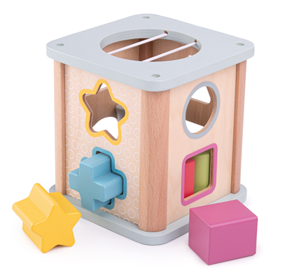 Slot the brightly coloured wooden shapes through the correct slot on the top of this Shape Sorter. Features a hole for easy access to the shapes. Helps to develop dexterity and co-ordination. Made from high quality, responsibly sourced materials. Conforms to current European safety standards. Consists of 9 play pieces
