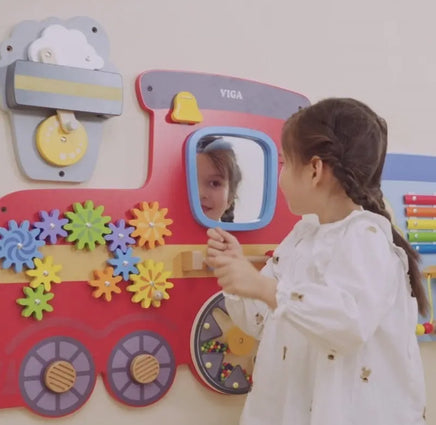 The locomotive panel has a large mirror for little ones to look at themselves and imagine being the train driver. Ring and bell on the top and let's embark on the journey of FUN!