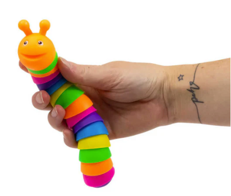 The Wiggle Caterpillar is a delightful sensory toy designed to provide hours of squishy, wiggly entertainment while enhancing tactile exploration. With its vibrant colours, soft texture, and flexible design, this friendly caterpillar is perfect for fidgeting, stress relief, and sensory engagement. Whether you’re looking for a calming tool, a focus aid, or just a fun way to keep hands busy, the Wiggle Caterpillar delivers a playful and soothing experience.